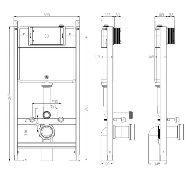 - Скрытый бачок с металлической рамой
