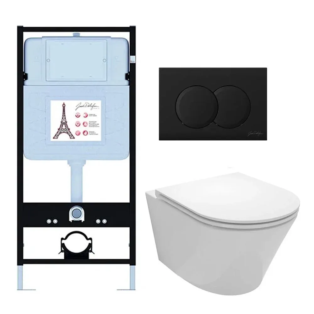 Инсталляция Jacob Delafon E21750RU-BL, с безободковым унитазом Rodin+, сиденье с микролифтом, клавиша черная матовая