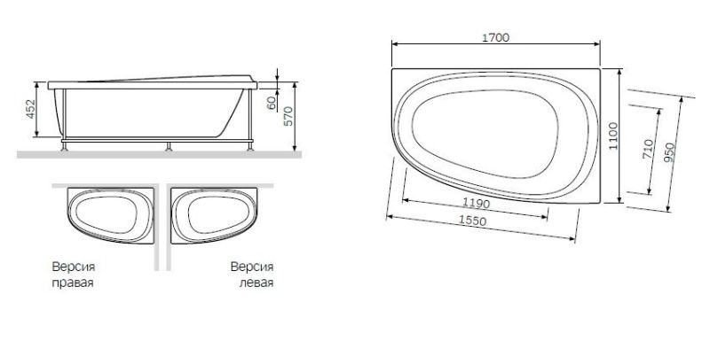 Каркас для ванны Am.pm Like W80A-170R110W-R 170x110 см правосторонний