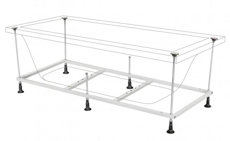 Сварная рама для прямоугольной ванны - надежное и устойчивое решение для установки ванны.Благодаря дополнительной обработке металлической конструкции практически исключается коррозионное воздействие, а регулируемые ножки позволяют установить ванну даже на неровной поверхности.