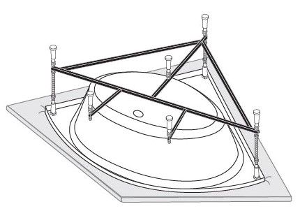 Усиленный цельносварной стальной каркас для ванны изготовлен из квадратного металлического профиля 2х2 см и окрашен темно-бронзовой молотковой краской. Каркас имеет 8 ножек и 4 опоры в борт ванны снизу. Предназначен для использования во влажных помещениях.