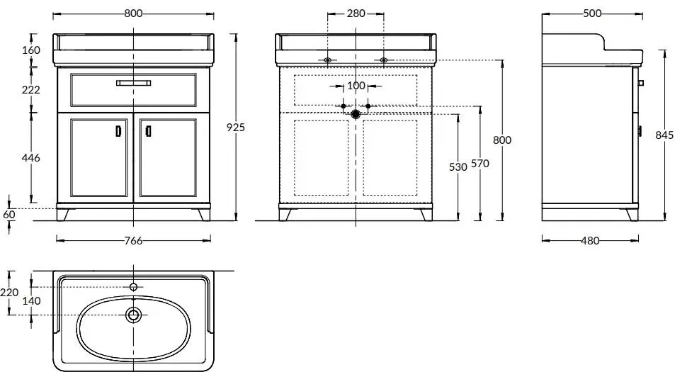 Мебель предназначена для установки раковины POMPEI шириной 80 см. Тумба с одним ящиком и нижней секцией, скрытой за двумя распашными дверцами, весьма функциональна: сверху можно хранить принадлежности для ванной, а внизу — всё то, что позволяет поддерживать её в чистоте и порядке. Обновлённые тумбы POMPEI легко узнать по характерному классическому дизайну с фасадом, скруглённым по двум сторонам. Вместительный ящик тумбы внутри выполнен с отделкой «лён антрацит», характерной для большинства новых моделей мебели KERAMA MARAZZI.