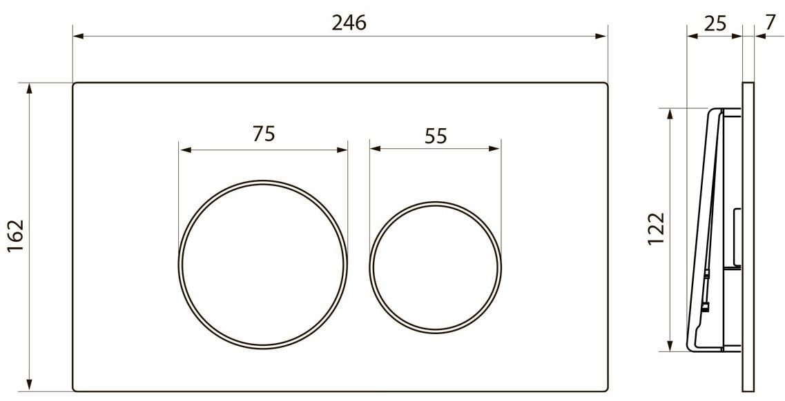 Клавиша смыва Point - представляет собой деталь системы инсталляции, которая приводит в действие спуск воды в унитаз. Такая кнопка отличается комфортом и практичностью в эксплуатации, а также имеет эстетичный внешний вид.Кнопки для инсталляций Point – оптимальный выбор для любого санузла, так как обладают современным дизайном, высокой технологичностью и простотой в использовании.
