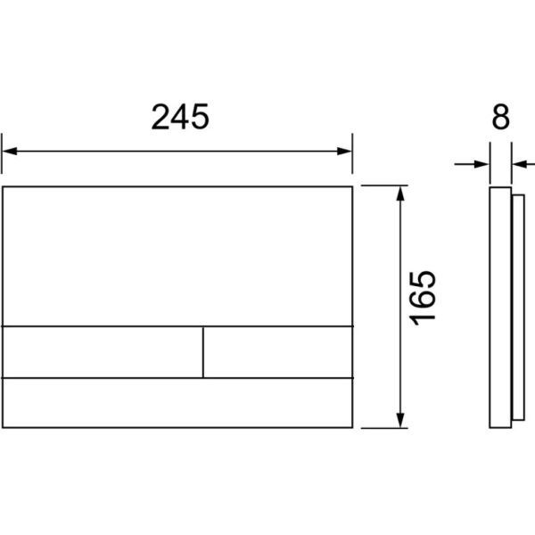 Панель смыва для смывных бачков TECE, фронтальная или верхняя установка. Сверхплоская металлическая панель смыва с двумя установленными на пружинах клавишами кулисного типа. В комплект поставки входят толкатели, крепежные элементы и инструмент для монтажа/демонтажа. Совместима с контейнером для гигиенических