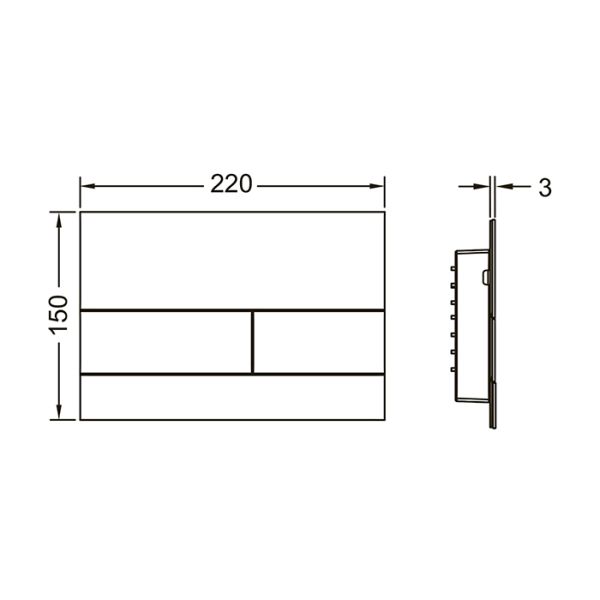 Панель смыва для смывных бачков TECE, фронтальная или верхняя установка. Сверхплоская металлическая панель смыва с двумя установленными на пружинах клавишами кулисного типа. В комплект поставки входят толкатели, крепежные элементы и инструмент для монтажа/демонтажа. Совместима с контейнером для гигиенических