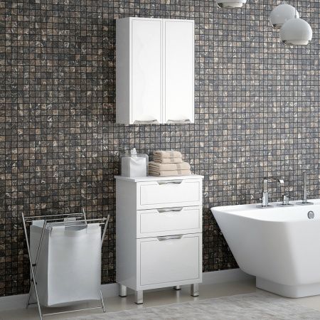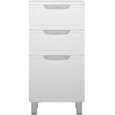 У комода "Монро 50 Z3" 3 выдвижных ящика. Высота верхних двух ящиков - 110 мм, нижнего - 250 мм. У комода 4 металлические опоры. Крышка и фасады - МДФ в плёнке.