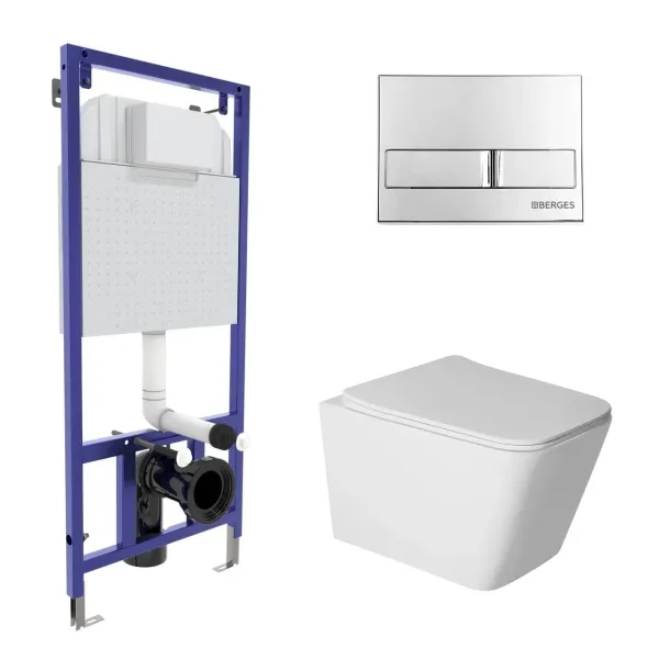 Комплект Berges 043399: инсталляция NOVUM кнопка L3 хром глянцевый унитаз Sigma Rimless сидение дюропласт быстросъём