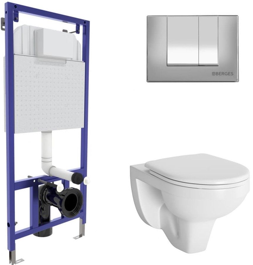 Комплект Berges 4в1 042427: инсталляция NOVUM525 кнопка S3 хром глянец унитаз Gamma сиденье микролифт купить