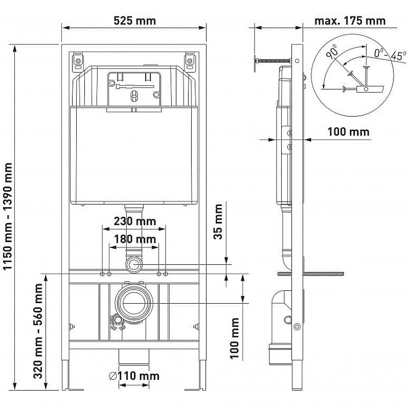 Инсталляция со смывным бачком NOVUM и клавишей смыва L5.
