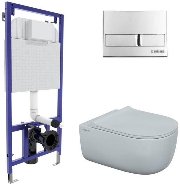 Комплект Berges 4в1 043203: инсталляция NOVUM525 кнопка L3 хром глянец унитаз EGO XL Rimless сиденье Toma Slim SO