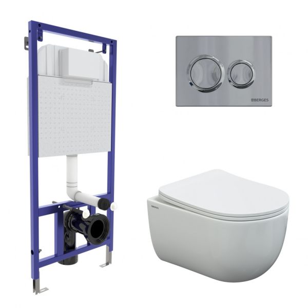 Комплект Berges 4в1 043241: инсталляция NOVUM 525 кнопка О3 хром глянец унитаз VENTAS Rimless сидение дюропласт Ventas Slim SO купить