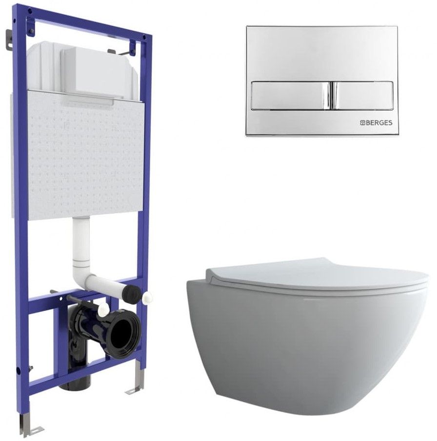 Комплект Berges 4в1 043245: инсталляция NOVUM525 кнопка L3 хром глянец унитаз Puma XL Rimless сиденье Toma Slim SO
