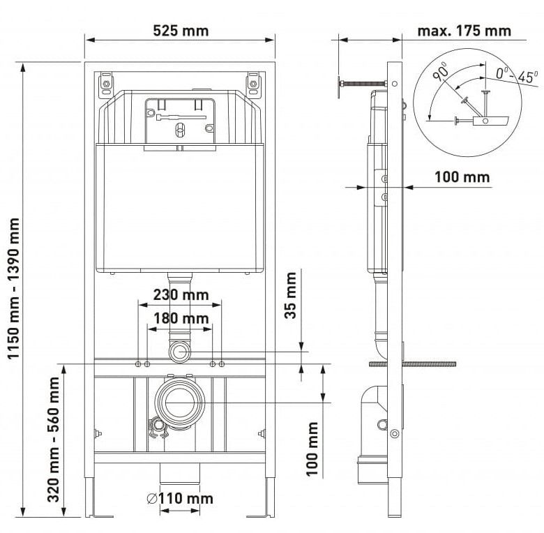 Полный комплект BERGES для монтажа подвесного унитаза. 1. Инсталляция NOVUM525Толщина бачка 80 мм.Межосевое расстояние под крепежные шпильки унитаза 18 и 23 см.Резервуар воды объемом 10 литров с тепло-шумоизоляцией.Уровень шума при давлении 3 бар не превышает 13 дБ.Подвод воды сверху (G1/2 наружная).Объем смыва 3/6 литра с возможностью регулировки. Металлический каркас, окрашенный антикоррозийной эмалью, расчетная нагрузка до 400 кг.Ножки регулировки высоты из оцинкованной стали. Возможность установки в угол. 2. кнопка L3 хром глянецABS-пластик 3. унитаз PUMA XL Rimless,безободковая система смыва, антибактериальное покрытиеэкономия воды, скрытый крепеж 4. сиденье дюропласт Toma Slim SOмикролифт, быстросъем Все крепежи для установки в комплекте