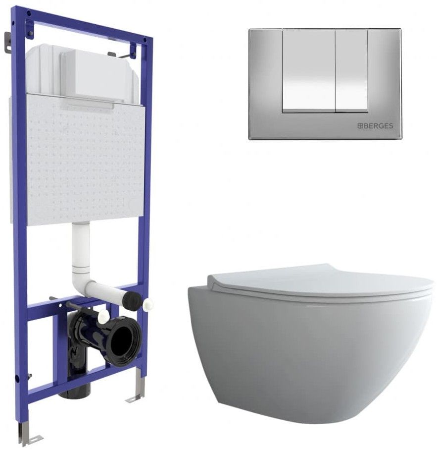Комплект Berges 4в1 043247: инсталляция NOVUM525 кнопка S3 хром глянец унитаз Puma XL Rimless сиденье Toma Slim SO купить