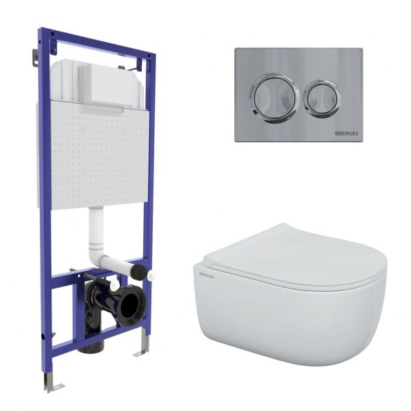 Комплект Berges 4в1 043249: инсталляция NOVUM 525 кнопка O3 хром глянец унитаз EGO Rimless сидение Okus Slim SO