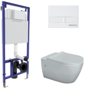 Комплект Berges 4в1 043266: инсталляция NOVUM525 кнопка L1 белая унитаз Mascon Rimless сиденье Toma Slim SO