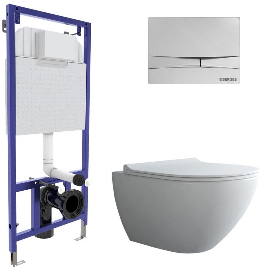 Комплект Berges 4в1 043269: инсталляция NOVUM525 кнопка F3 хром глянец унитаз Puma Rimless сиденье Toma Slim SO купить