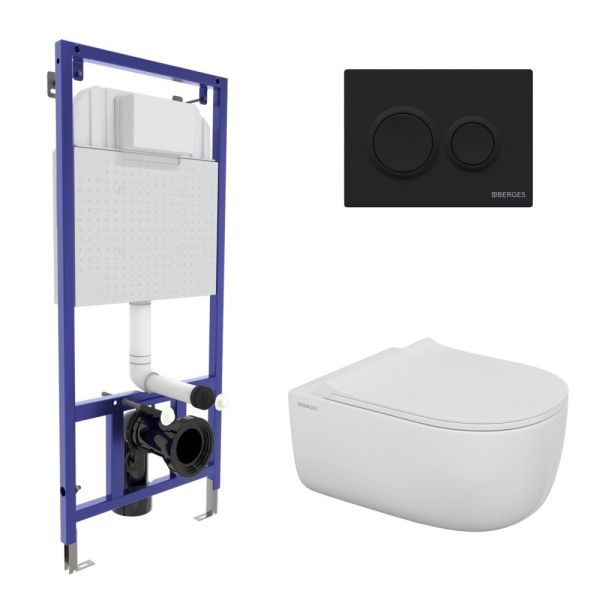 Комплект Berges 4в1 043303: инсталляция NOVUM 525 кнопка O5 черная Soft Touch унитаз EGO XL Rimless сидение Okus Slim SO