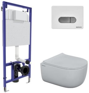 Комплект Berges 4в1 047237: инсталляция NOVUM525 кнопка D7 белая/хром унитаз EGO Rimless сиденье Toma Slim SO