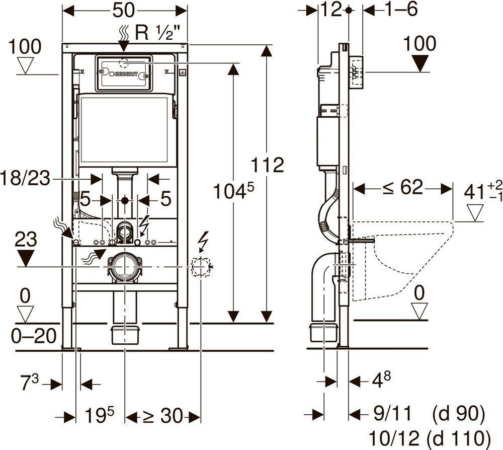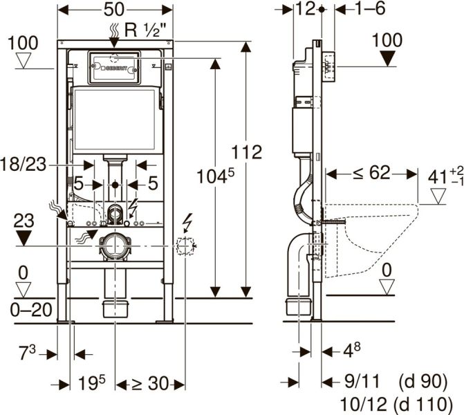 Система инсталляции для унитазов Geberit Duofix 458.128.21.1 оснащена трубкой подвода воды для подсоединения унитазов-биде Geberit AquaClean. Подходит для унитазов с размерами подключения согласно EN 33:2011 и с вылетом до 62 см. Смывной бачок скрытого монтажа с фронтальной установкой покрыт защищенной от конденсата оболочкой. Конструкция рамы готова для крепления скоб при установке нестандартного санфаянса. Монтаж соединительного колена может проводиться без использования инструментов.Возможность крепления для электропитания
