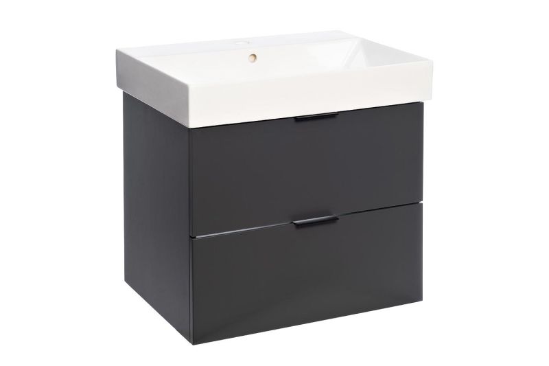 Серия Modern Line: Лаконичные подвесные тумбы в графитовом цвете Производитель: Европейский дизайн (указано: "Дизайн от ведущих производителей Европы") ----------------------Модельный ряд Артикул Модель Габариты тумбы (Ш?Г?В) Раковина в комплекте (Ш?Г?В) 14000011 Modern Line 60 575 ? 500 ? 450 мм 600 ? 100 ? 455 мм 14000017 Modern Line 80 820 ? 500 ? 436 мм 820 ? 100 ? 455 мм ----------------------Ключевые характеристики Параметр Описание Конструкция Подвесной монтаж (экономия пространства, удобство уборки) Система хранения 2 вместительных выдвижных ящика Материалы • Корпус/фасад: МДФ с декоративной плёнкой• Раковина: Сантехнический фарфор Отделка • Поверхность: Матовая• Цвет: Графит (единственный вариант) ----------------------Преимущества серии ? Стильный минимализм: - Монохромный графитовый цвет + матовая поверхность ? актуальный дизайн в стиле modern industrial.? Готовые решения: - Раковины идеально интегрированы по размеру (575 мм тумба + 600 мм раковина; 820 мм тумба + 820 мм раковина).? Практичность: - Влагостойкая плёнка МДФ устойчива к брызгам и перепадам влажности. - 2 ящика с плавным ходом для хранения косметики, полотенец.? Эргономика: - Глубина 500 мм оптимальна для небольших помещений. ----------------------Сравнение моделей Параметр Modern Line 60 Modern Line 80 Ширина 575 мм (компактная) 820 мм (просторная) Высота тумбы 450 мм 436 мм Раковина 600 мм (свес 12.5 мм по бокам) 820 мм (полное совпадение) Рекомендации Для малогабаритных ванных Для семейных помещений . ----------------------Серия Modern Line — выбор для ценителей сдержанной эстетики и функциональности. Идеальна, если требуется:• Единое стилевое решение без сложного подбора компонентов.• Надёжность влагостойких материалов.• Визуальное расширение пространства за счёт тёмного матового фасада.