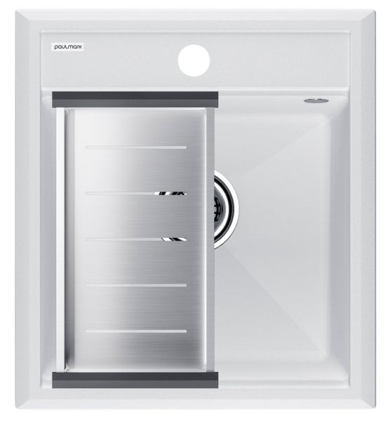 Комплект Paulmark: мойка Stepia 45 и коландер Advance PM114651-WH+A375-BS белый/брашированная нержавеющая сталь