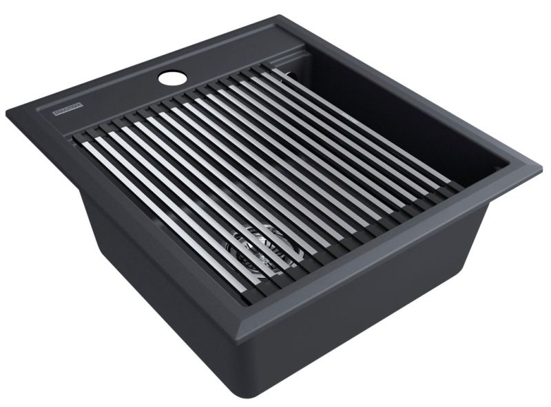 Комплект мойка STEPIA 45 + ролл-мат STEP, PM114651-BLM+R375-BS Стильный и многофункциональный комплект мойки из композитного материала на основе гранита и ролл-мата из высококачественной нержавеющей стали для создания комфортной рабочей зоны на вашей кухне.Мойка STEPIA 45 изготовлена из IT-GRANIT – композитного материала на основе гранита, благодаря чему мойка не потеряет свой первоначальный цвет за многие годы использования даже при длительном воздействии солнечных лучей. Материал мойки устойчив к сколам, царапинам и деформациям. На горизонтальных гранях чаши мойки предусмотрены специальные выступы-ступеньки, которые позволяют использовать такие аксессуары, как ролл-маты, доски, коландеры и пр. для создания дополнительной рабочей поверхности на кухне. Дно чаши мойки имеет 4 грани, направленных к сливу под индивидуальным градусом для максимально быстрого ухода воды.