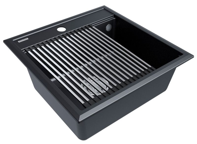 Комплект мойка STEPIA 50 + ролл-мат STEP, PM115051-BLM+R375-BSСтильный и многофункциональный комплект мойки из композитного материала на основе гранита и ролл-мата из высококачественной нержавеющей стали для создания комфортной рабочей зоны на вашей кухне.Мойка STEPIA 50 изготовлена из IT-GRANIT – композитного материала на основе гранита, благодаря чему мойка не потеряет свой первоначальный цвет за многие годы использования даже при длительном воздействии солнечных лучей. Материал мойки устойчив к сколам, царапинам и деформациям. На горизонтальных гранях чаши мойки предусмотрены специальные выступы-ступеньки, которые позволяют использовать такие аксессуары, как ролл-маты, доски, коландеры и пр. для создания дополнительной рабочей поверхности на кухне. Дно чаши мойки имеет 4 грани, направленных к сливу под индивидуальным градусом для максимально быстрого ухода воды.