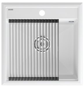 Комплект мойка STEPIA 50 + ролл-мат STEP, PM115051-WH+R375-BSСтильный и многофункциональный комплект мойки из композитного материала на основе гранита и ролл-мата из высококачественной нержавеющей стали для создания комфортной рабочей зоны на вашей кухне.Мойка STEPIA 50 изготовлена из IT-GRANIT – композитного материала на основе гранита, благодаря чему мойка не потеряет свой первоначальный цвет за многие годы использования даже при длительном воздействии солнечных лучей. Материал мойки устойчив к сколам, царапинам и деформациям. На горизонтальных гранях чаши мойки предусмотрены специальные выступы-ступеньки, которые позволяют использовать такие аксессуары, как ролл-маты, доски, коландеры и пр. для создания дополнительной рабочей поверхности на кухне. Дно чаши мойки имеет 4 грани, направленных к сливу под индивидуальным градусом для максимально быстрого ухода воды.
