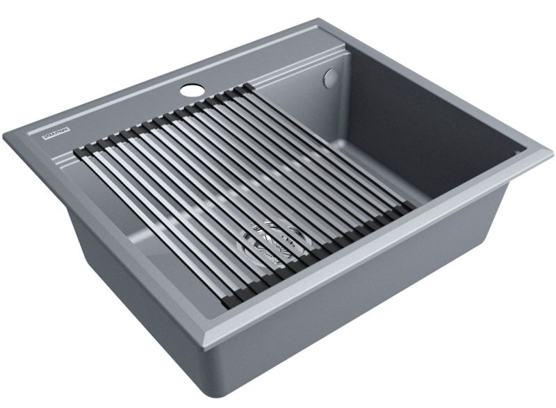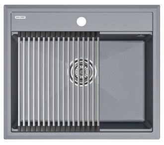 Комплект мойка STEPIA 60 + ролл-мат STEP, PM115951-GRM+R375-BSСтильный и многофункциональный комплект мойки из композитного материала на основе гранита и ролл-мата из высококачественной нержавеющей стали для создания комфортной рабочей зоны на вашей кухне.Мойка STEPIA 60 изготовлена из IT-GRANIT – композитного материала на основе гранита, благодаря чему мойка не потеряет свой первоначальный цвет за многие годы использования даже при длительном воздействии солнечных лучей. Материал мойки устойчив к сколам, царапинам и деформациям. На горизонтальных гранях чаши мойки предусмотрены специальные выступы-ступеньки, которые позволяют использовать такие аксессуары, как ролл-маты, доски, коландеры и пр. для создания дополнительной рабочей поверхности на кухне. Дно чаши мойки имеет 4 грани, направленных к сливу под индивидуальным градусом для максимально быстрого ухода воды.