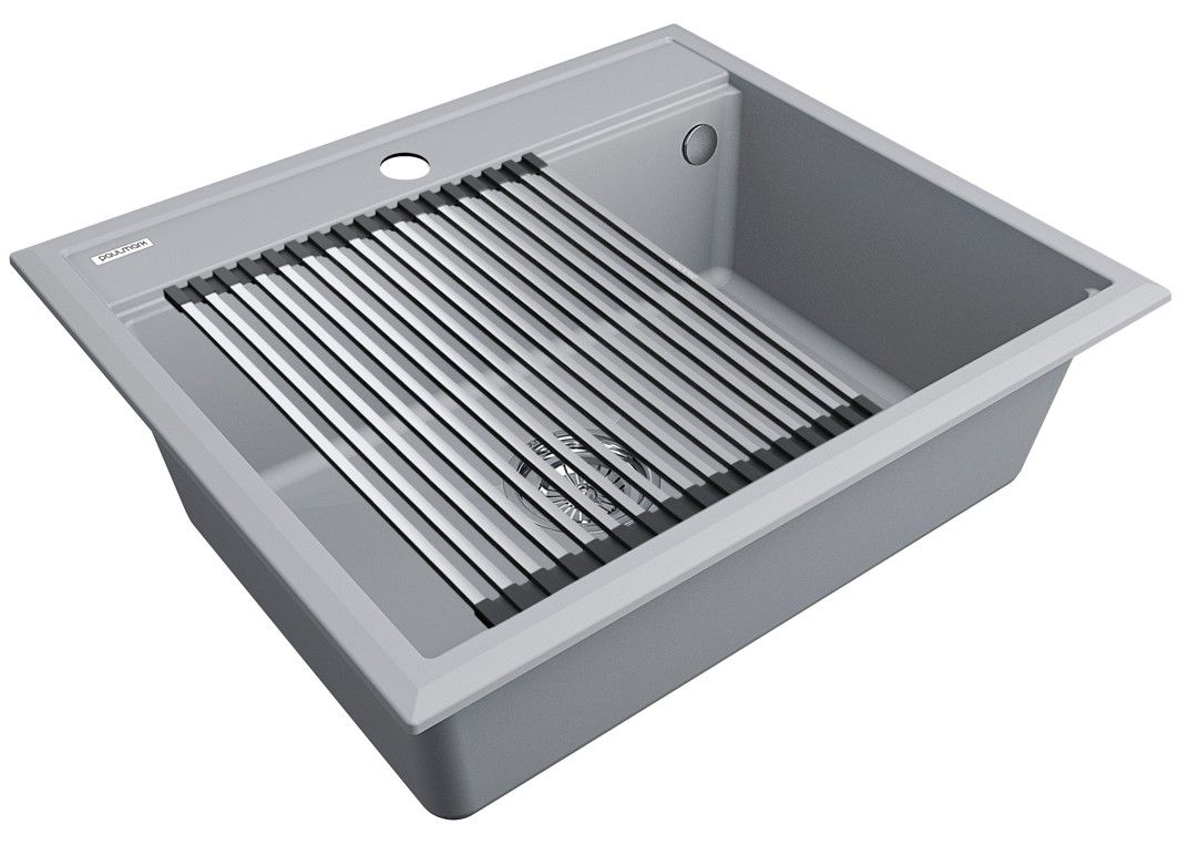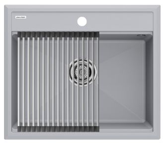 Комплект мойка STEPIA 60 + ролл-мат STEP, PM115951-GRS+R375-BSСтильный и многофункциональный комплект мойки из композитного материала на основе гранита и ролл-мата из высококачественной нержавеющей стали для создания комфортной рабочей зоны на вашей кухне.Мойка STEPIA 60 изготовлена из IT-GRANIT – композитного материала на основе гранита, благодаря чему мойка не потеряет свой первоначальный цвет за многие годы использования даже при длительном воздействии солнечных лучей. Материал мойки устойчив к сколам, царапинам и деформациям. На горизонтальных гранях чаши мойки предусмотрены специальные выступы-ступеньки, которые позволяют использовать такие аксессуары, как ролл-маты, доски, коландеры и пр. для создания дополнительной рабочей поверхности на кухне. Дно чаши мойки имеет 4 грани, направленных к сливу под индивидуальным градусом для максимально быстрого ухода воды.
