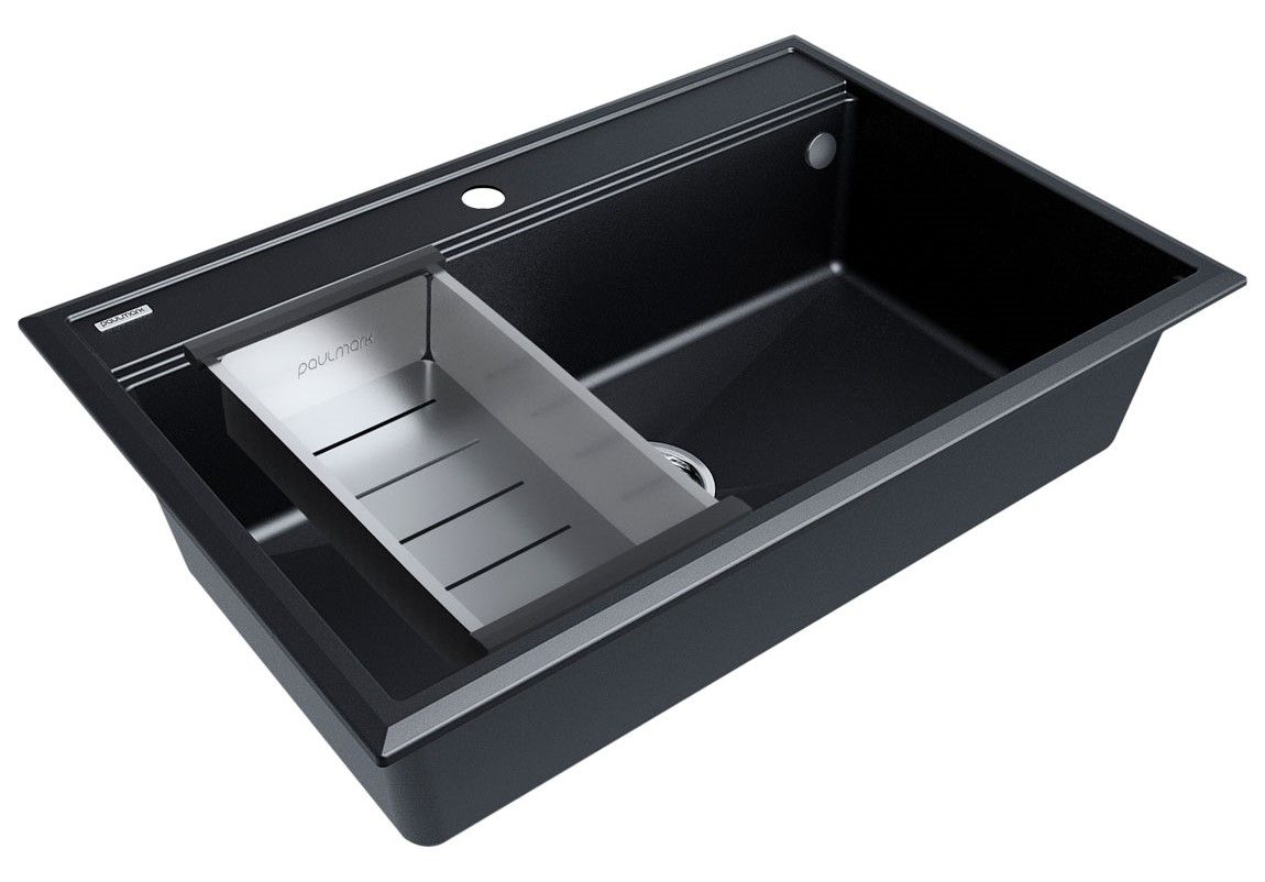Комплект Paulmark: мойка Stepia 80 и коландер Advance PM117551-BLM+A375-BS чёрный металлик/брашированная нержавеющая сталь купить