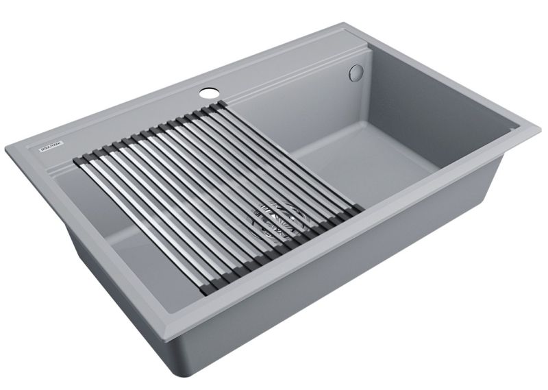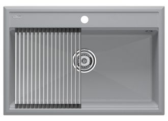 Комплект мойка STEPIA 80 + ролл-мат STEP, PM117551-GRS+R375-BSСтильный и многофункциональный комплект мойки из композитного материала на основе гранита и ролл-мата из высококачественной нержавеющей стали для создания комфортной рабочей зоны на вашей кухне.Мойка STEPIA 80 изготовлена из IT-GRANIT – композитного материала на основе гранита, благодаря чему мойка не потеряет свой первоначальный цвет за многие годы использования даже при длительном воздействии солнечных лучей. Материал мойки устойчив к сколам, царапинам и деформациям. На горизонтальных гранях чаши мойки предусмотрены специальные выступы-ступеньки, которые позволяют использовать такие аксессуары, как ролл-маты, доски, коландеры и пр. для создания дополнительной рабочей поверхности на кухне. Дно чаши мойки имеет 4 грани, направленных к сливу под индивидуальным градусом для максимально быстрого ухода воды.