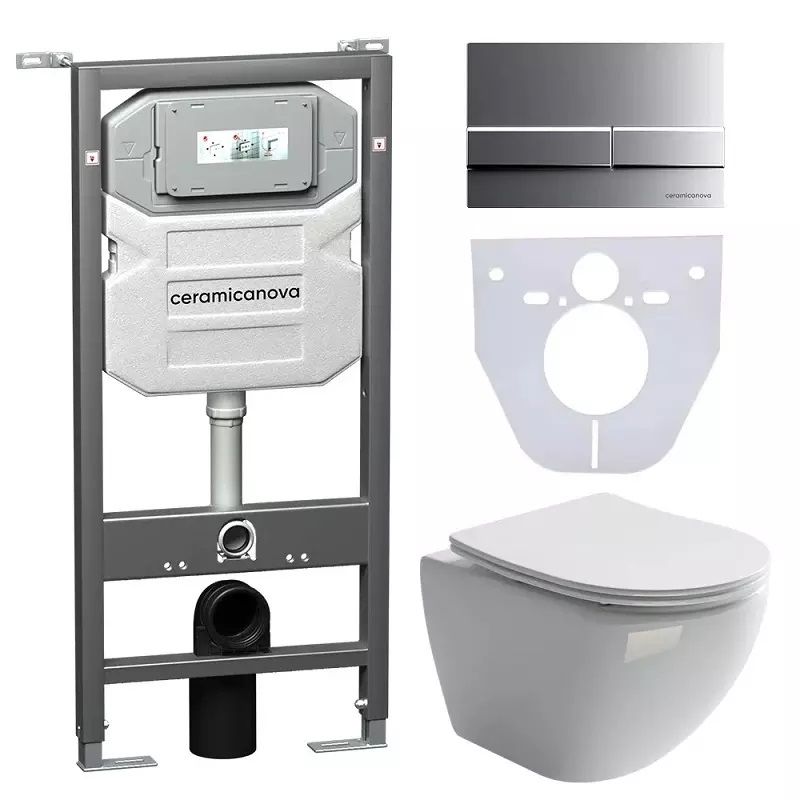 Комплект с инсталляцией Ceramica Nova CN4002_1002M_1000 унитаз Metropol CN4002 крышка-сиденье с микролифтом и инсталляция Envision CN1002M с кнопкой смыва хром матовый Flat купить