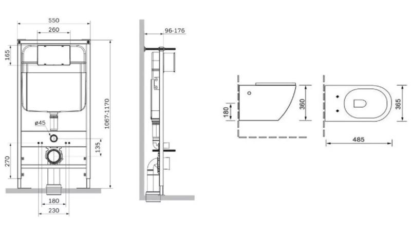 • Монтаж: встраиваемая перед стеной.