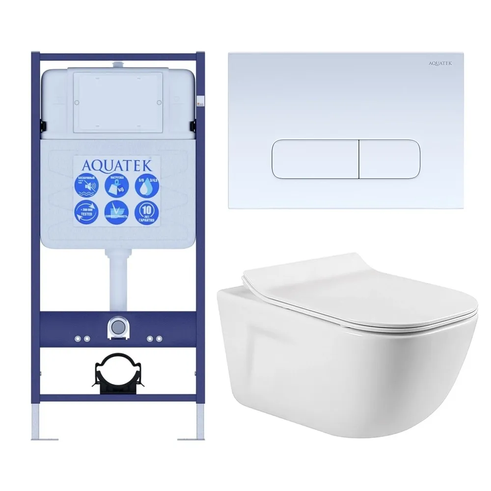 Комплект SET AQUATEK ДИВА-013 4в1 унитаз с инсталляцией кнопкой и сиденьем микролифт купить