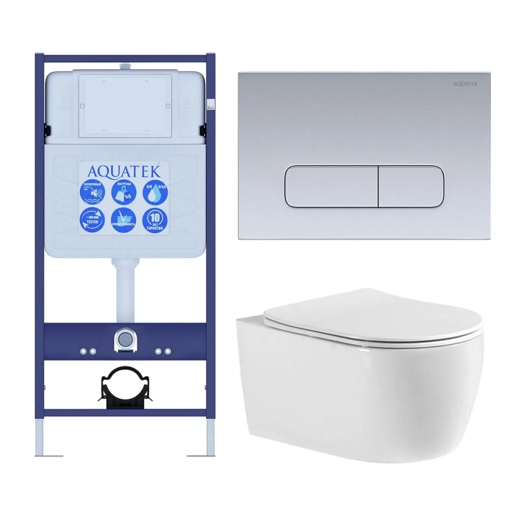 Комплект SET AQUATEK ЕВРОПА cmp014 унитаз с инсталляцией кнопкой и сиденьем микролифт купить