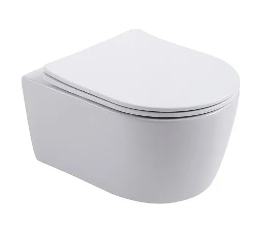 • AQ1106-00 ЕВРОПА Унитаз подвесной безободковый 490*360*250мм, тонкое сиденье с механизмом плавного закрывания, крепеж