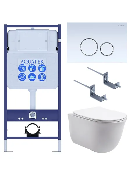 Комплект SET AQUATEK КЛАССИК-015 4в1 унитаз с инсталляцией кнопкой и сиденьем микролифт купить