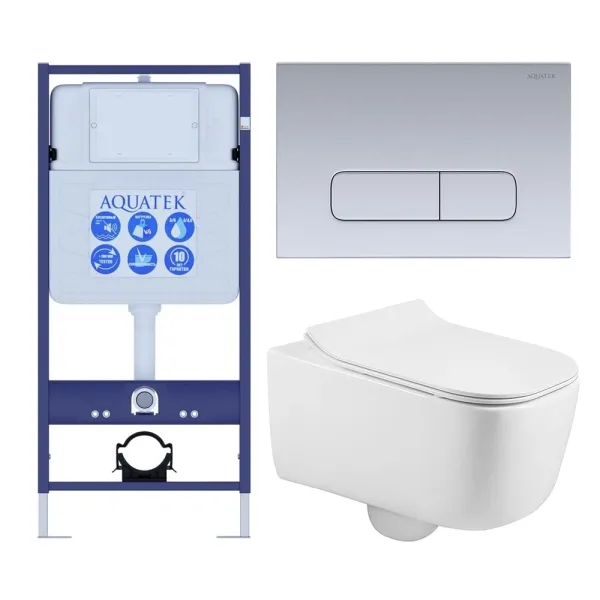 Комплект SET AQUATEK ЛУГАНО-014 4в1 унитаз с инсталляцией кнопкой и сиденьем микролифт купить