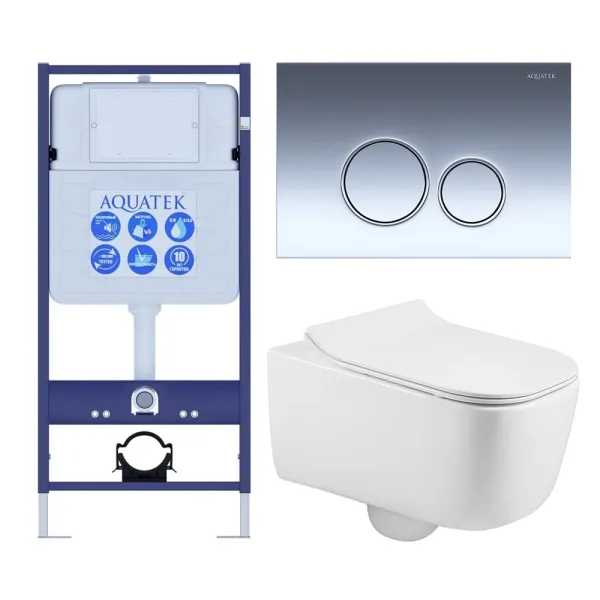 Комплект SET AQUATEK ЛУГАНО-018 4в1 унитаз с инсталляцией кнопкой и сиденьем микролифт купить