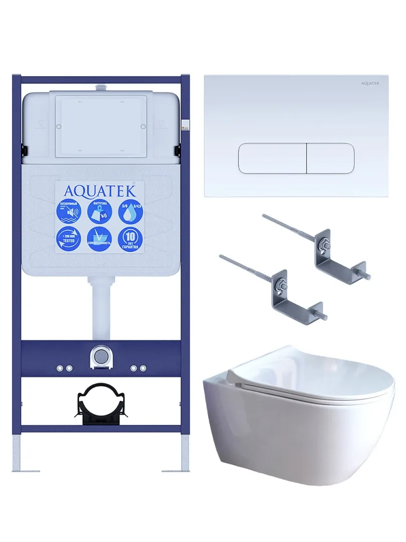 Комплект SET AQUATEK ПОЛАРИС-01-013 4в1 унитаз с инсталляцией кнопкой и сиденьем микролифт