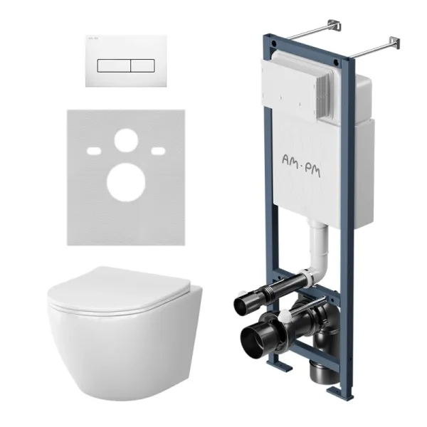 Комплект унитаза с инсталляцией AM.PM Like IS110301.801900 с сиденьем Микролифт и клавишей смыва белой