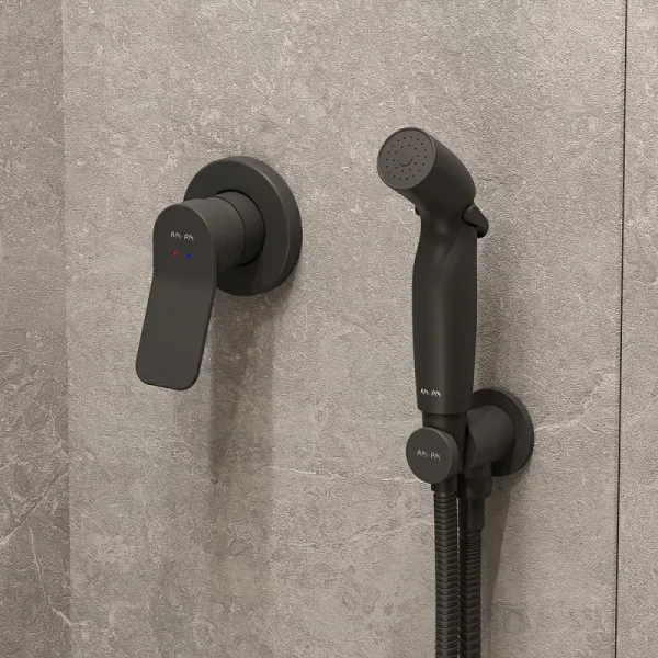 Комплект унитаза с инсталляцией AM.PM Spirit CK70GH Черный матовый с сиденьем Микролифт с Черной глянцевой клавишей смыва с гигиеническим душем и аксессуарами для ванной комнаты