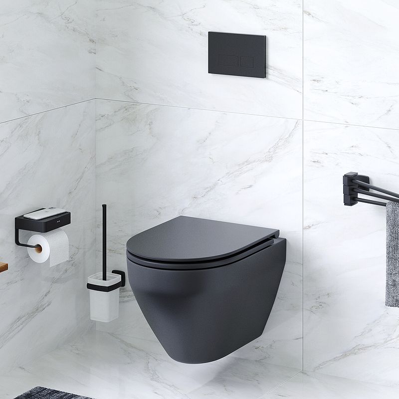 Комплект унитаза с инсталляцией AM.PM Spirit V2.0 FlashClean IS49038.701700MB с сиденьем Микролифт и Черной матовой клавишей смываПолностью готовый к установке комплект: система инсталляции с клавишей, подвесной унитаз сиденьем. Не разборная рама из стального профиля выдерживает нагрузку до 400 кг. Полностью изолированный бачок с качественной двухрежимной смывной арматурой - комфортное использование благодаря низкому уровню шума - менее 20 Дб. Укомплектован пневматической клавишей в цвете никель матовый. В комплекте все необходимые патрубки и крепления, а также прокладка между унитазом и стеной - звукоизоляция. Выверенный геометрический дизайн унитаза Spirit V2.0 - идеально ровные поверхности с четкими гранями, - отмечен премиями iF Design и Good Design. FlashClean - новое поколение безободковых унитазов без использования пластика: 100% гигиеничности, 0% брызг. Компактное дизайнерское решение: идеально впишется в санузел любого размера благодаря проекции 49 см. Полностью скрытые крепления и скрытый фановый выход обеспечат эстетическую чистоту дизайна и лёгкость в уходе за керамикой. В комплекте быстросъемное сиденье из дюропласта с механизмом плавного закрывания. Материал сиденья дюропласт, устойчивый к появлению царапин, в сочетании с креплениями из нержавеющей гарантируют долговечность сиденья. Механизм плавного опускания, рассчитанный на 100 000 закрываний, и быстрого снятия - комфорт в использовании и легкость в уходе за сиденьем и керамикой.