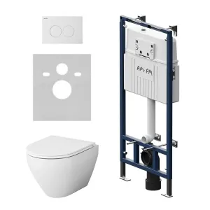 Комплект унитаза с инсталляцией AM.PM Spirit V2.0 IS100101.701700 сиденье микролифтПолностью готовый к установке комплект: система инсталляции с клавишей подвесной унитаз с сиденьем включающий все необходимые крепления патрубки звукоизолирующую прокладку. Экономия пространства благодаря узкому бачку – 120 мм глубиной. Заливной клапан с низким уровнем шума - Класс II согласно европейского стандарта EN 14124. Функция SetUp : Гибкая система крепежа – универсальность и эффективность установочного процесса. Гибко обходит вертикальные и горизонтальные трубы. Высокая прочность и износостойкость. Выдерживает нагрузку до 400 кг. Подходит для унитазов любых размеров. Армированный шланг подачи воды двойная прокладка слива и подачи воды. В комплекте механическая двухрежимная клавиша из ABS пластика в цвете белый глянцевый. Подключение воды сзади сверху. Выверенный геометрический дизайн унитаза Spirit V2.0 - идеально ровные поверхности с четкими гранями - отмечен премиями iF Design и Good Design. FlashClean - новое поколение безободковых унитазов без использования пластика: 100% гигиеничности 0% брызг. Компактное дизайнерское решение: идеально впишется в санузел любого размера благодаря проекции 49 см. Полностью скрытые крепления и скрытый фановый выход обеспечат эстетическую чистоту дизайна и лёгкость в уходе за керамикой. В комплекте быстросъемное сиденье из дюропласта с механизмом плавного закрывания. Материал сиденья дюропласт устойчивый к появлению царапин в сочетании с креплениями из нержавеющей гарантируют долговечность сиденья. Механизм плавного опускания рассчитанный на 100 000 закрываний и быстрого снятия - комфорт в использовании и легкость в уходе за сиденьем и керамикой.