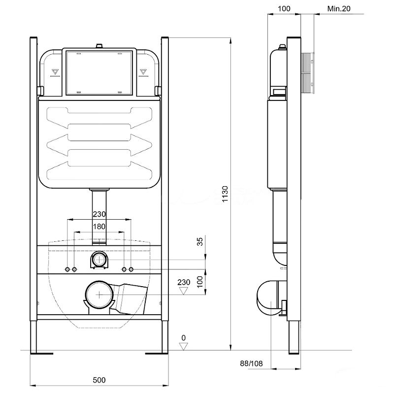 Размеры (ШхВхД): 500х1130х100 мм.