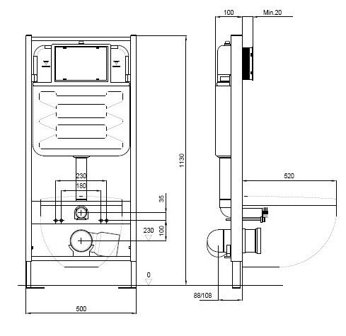 Комплект унитаза с инсталляцией Aquatek SET AQUATEK ПОЛАРИС-024 4в1 с сиденьем Микролифт и клавишей смываГабаритные размеры мм