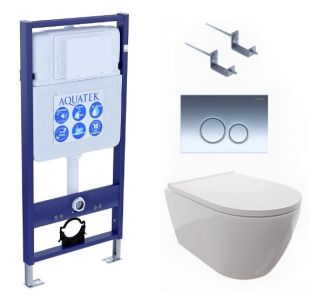 Комплект унитаза с инсталляцией Aquatek SET AQUATEK ПОЛАРИС-024 4в1 с сиденьем Микролифт и клавишей смыва