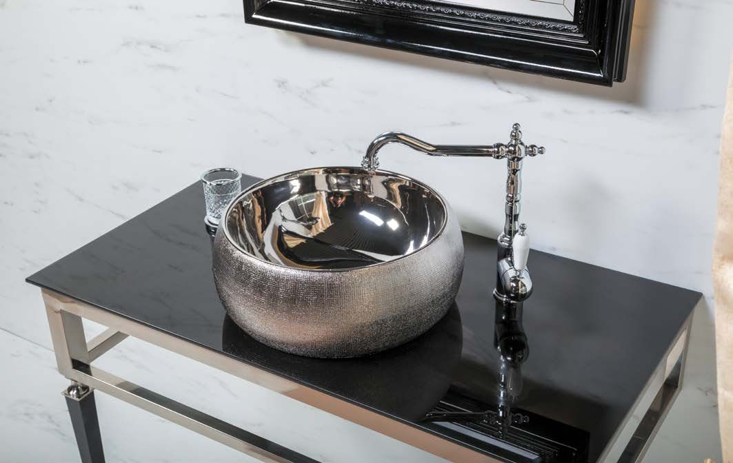 Консоль с раковиной Vogue шириной 100 см цветом хром.Консоли произведены из нержавеющей стали благодаря чему стойки к коррозии. Гальваническое покрытие исполнено в цветах хром и золото. Можно выбрать столешницу из мрамора, хрустального каленого стекла в различных цветовых исполнениях, и Solid Glass (передовой материал, в состав которого входит мраморная крошка и стекло). Раковины-чаши, которыми можно дополнть консоли, выполнены из Corian, хрустального стекла, керамики. Хорошим дополнением к консолям являются пеналы Armadi Art, а также сифоны, клик-клаки и смесители Boheme.Мебель можно дополнить пеналом и зеркалом